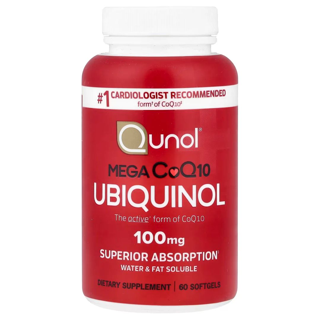 O Qunol Mega CoQ10 Ubiquinol é um suplemento com 100 softgels contendo 100mg de Ubiquinol (forma ativa do CoQ10) cada, na tecnologia patenteada HydrosolublQ+ da Kaneka Ubiquinol®. 1 softgel ao dia com refeição — 100 dias. NÃO vegetariano (gelatina bovina). Sem glúten. Non-GMO. É a #1 forma de CoQ10 recomendada por cardiologistas nos EUA (IQVIA ProVoice Survey), formulada para ser solúvel em água e gordura para absorção superior ao CoQ10 convencional.